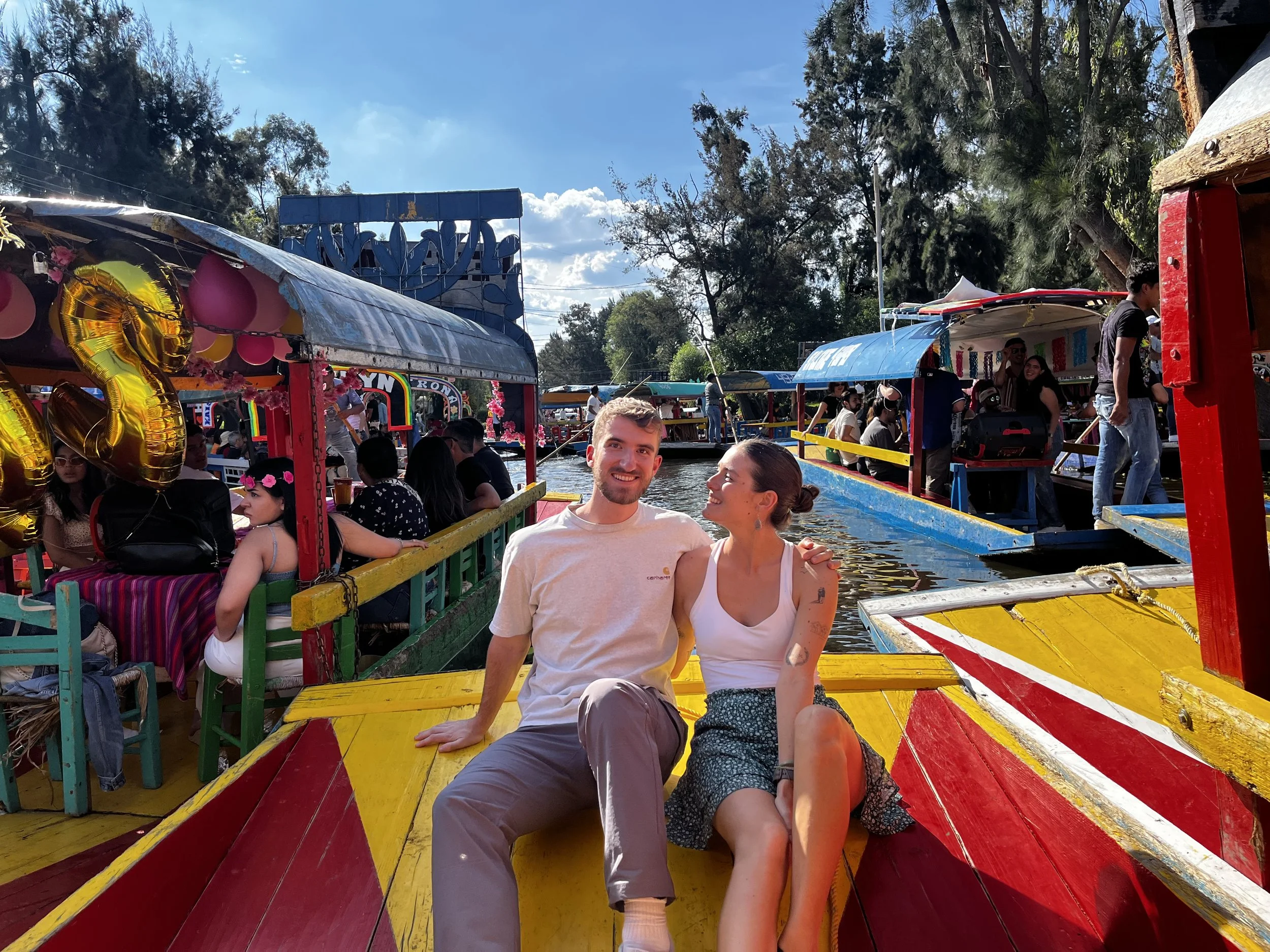 We talked, we laughed, we thought we were gonna run into the insane traffic of other embarcaderos, but we didn’t. We soaked in the rainbow of brightly colored boats; bachelorette parties of flower-crowned girlies, casual Sunday picnics of Mexican families barbequing, and wide-eyed tourists who stared straight ahead and tried to appear to enjoy the whacky, incomprable experience of boating through the throngs of people. We splurged on mariachis who jumped from their boat to ours and performed the most intimate, raucous, beautiful concert I’ve ever experienced in my life. Men who were experts at their instrument, playing through the hue of golden hour from the depths of their souls these classic songs of love and heartbreak and celebration. I don’t think Nathan nor I will forget the mariachis as long as we live.